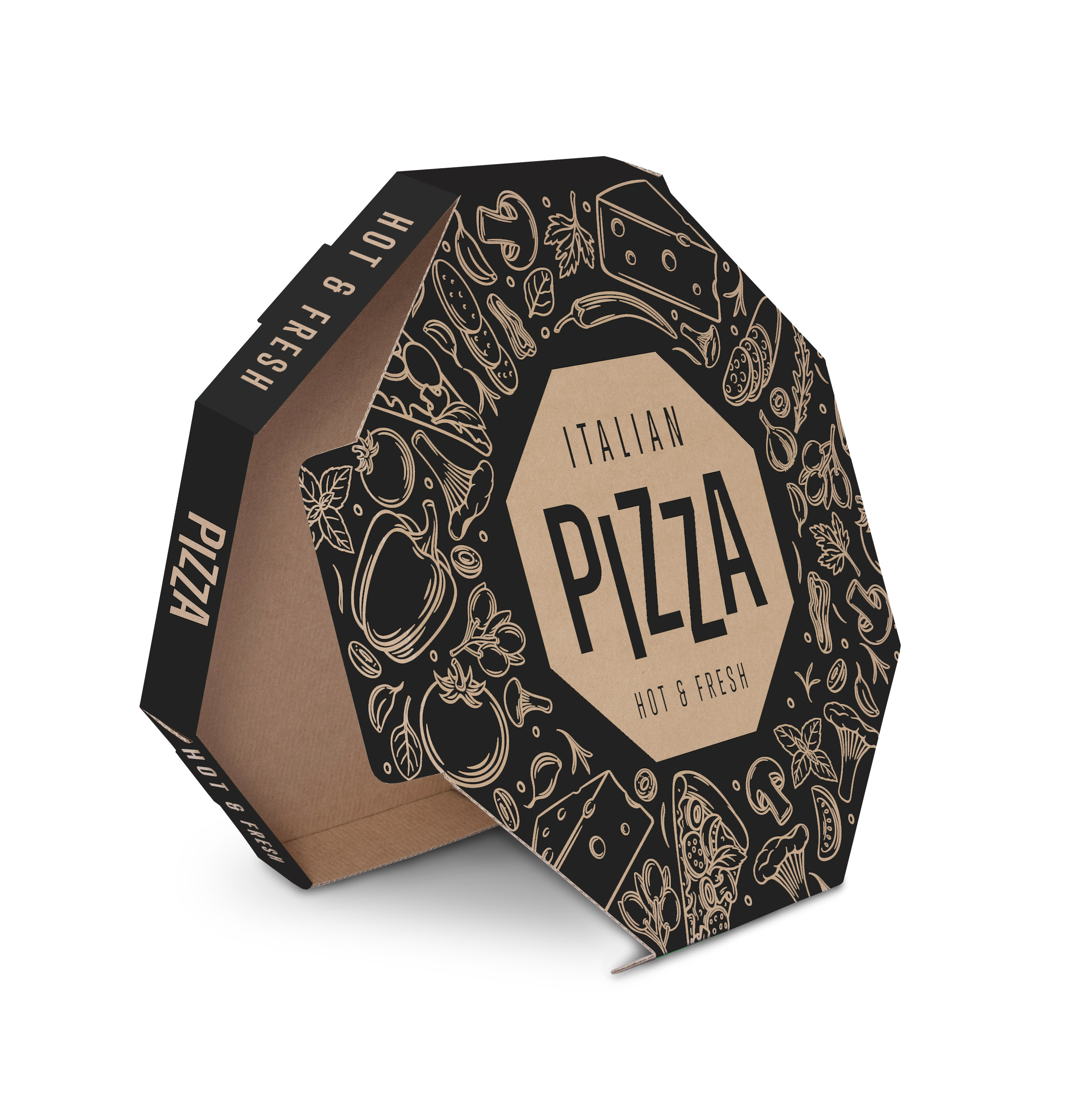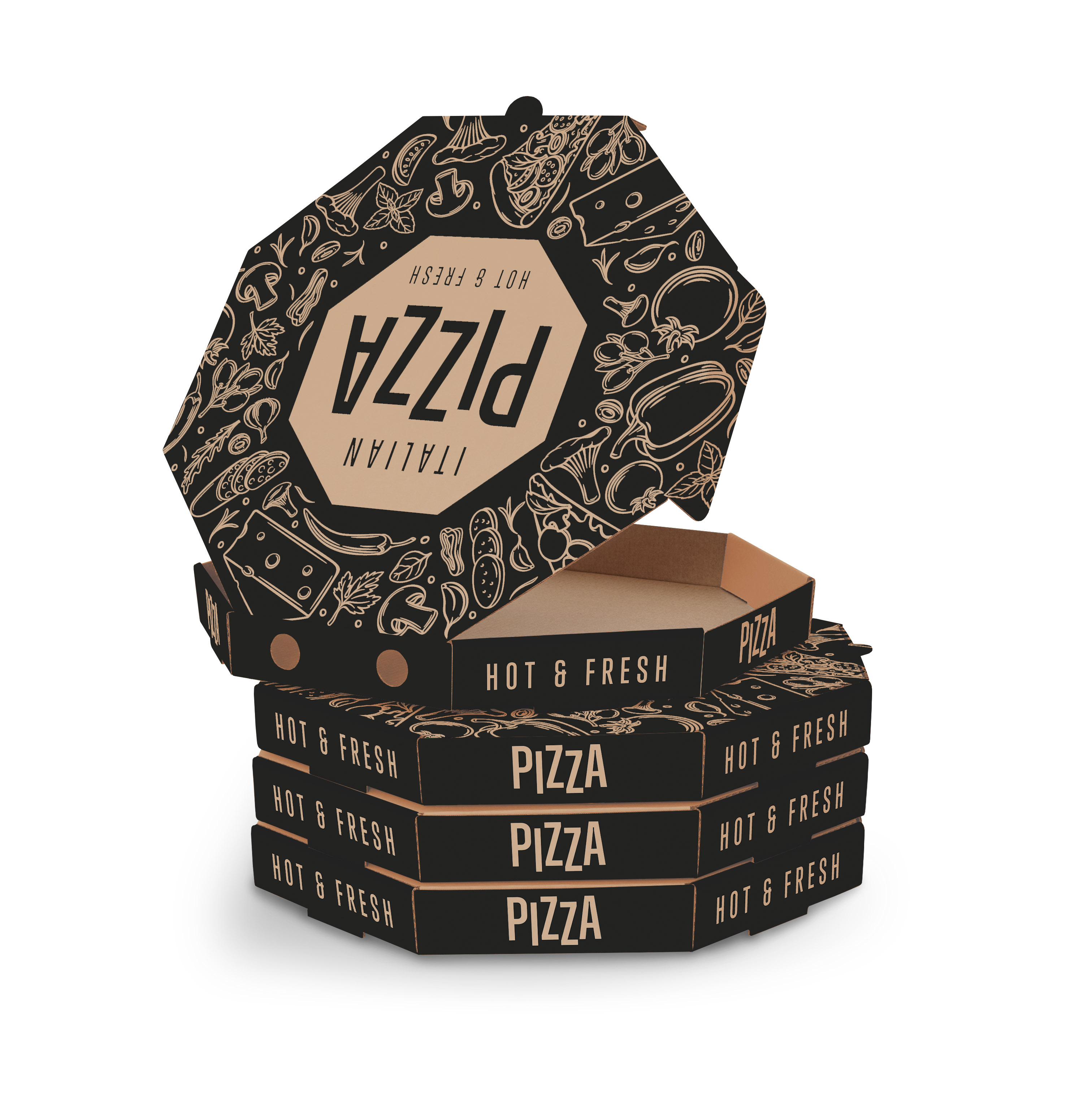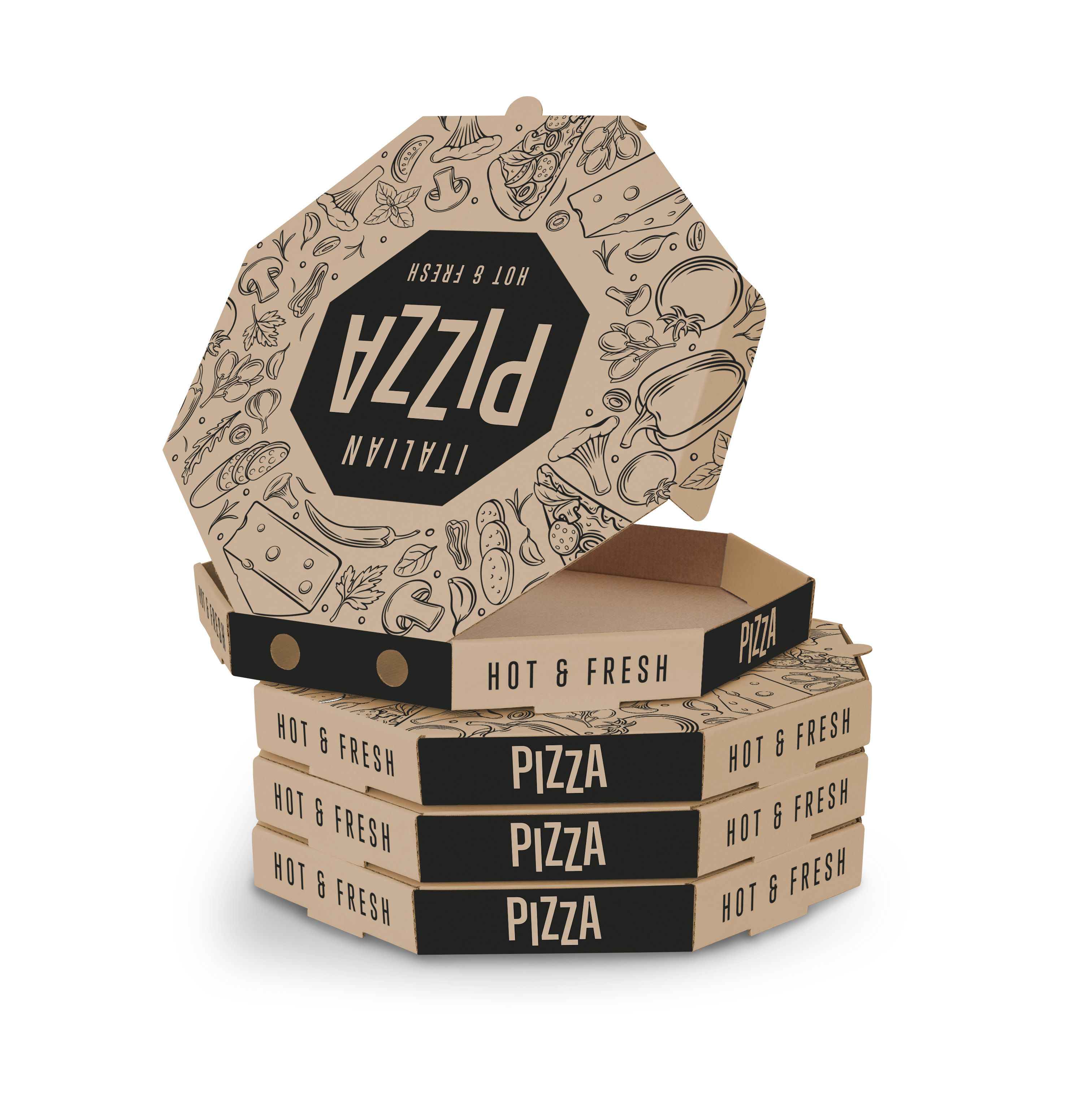 Krabice na pizzu zajímavého designu s potiskem Italian Pizza.